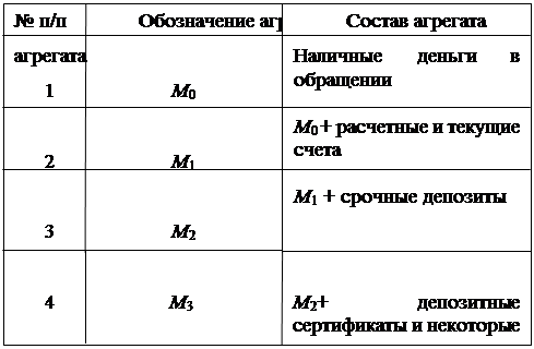 В настоящее время принято различать следующие два основных денежных агрегата, т. е. такие группировки ликвидных активов, которые могут служить альтернативными измерителями денежной массы.