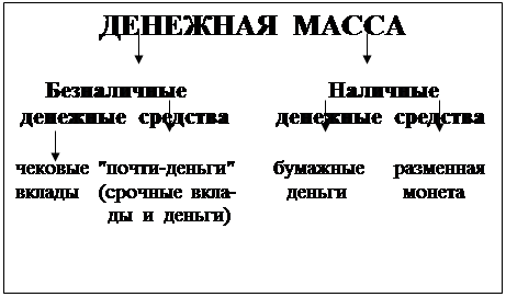Таким образом, структура денежной массы достаточно сложна и не совпадает со стереотипом, который сложился в сознании рядового потребителя, считающего деньгами прежде всего наличные средства - бумажные деньги и мелкую разменную монету. На деле доля бумажных денег в денежной массе весьма низка (менее 25%), а основная часть сделок между предпринимателями и организациями, даже в розничной торговле, совершается в развитой рыночной экономике путем использования банковских счетов. В результате наступила эра банковских денег-чеков, кредитных карточек, чеков для путешественников и т. п. Эти инструменты расчетов позволяют распоряжаться денежными депозитами, т. е. безналичными деньгами. При оплате товара и услуги покупатель, используя чек или кредитную карточку, приказывает банку перевести сумму покупки со своего депозита на счет продавца или выдать ему наличные.