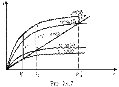 график сокращения капиталовооруженности при учете всех трех факторов экономического роста;