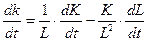 Возьмем производную от капиталовооруженности по времени.