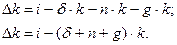 Экономический смысл полученного выражения заключается в следующем. С учетом роста народонаселения капиталовооруженность сокращается за год на величину