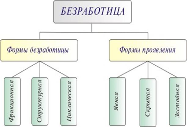 Безработица может быть открытой и скрытой, долгосрочной и краткосрочной. К долгосрочной безработице относят циклическая и структурная, а к краткосрочной – сезонная и фрикционная.