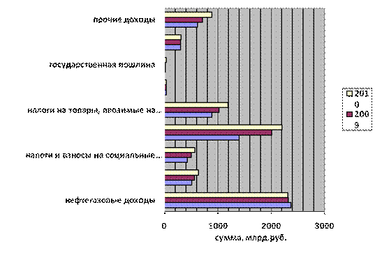 Доходы федерального бюджета формируются за счет налоговых и неналоговых поступлений, средств по взаимным расчетам с бюджетами субъектов РФ, других безвозмездных перечислений, а также остатка средств на конец предыдущего года. К основным налоговым доходам федерального бюджета относятся: НДС, акцизы на отдельные виды товаров (услуг) и отдельные виды минерального сырья, налог на прибыль (доход) организаций, налог на доходы от капитала, государственная пошлина, таможенная пошлина и таможенные сборы, платежи за пользование недрами, лесным фондом, водными объектами, экологический налог, федеральные лицензионные и регистрационные сборы и др.