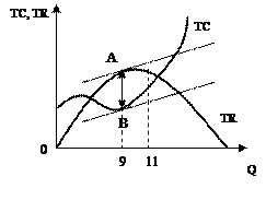 1. Методом сравнения валового дохода (TR ) и валовых издержек (ТС);