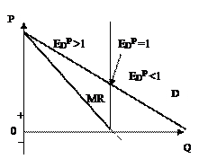 Монополист, стремящийся максимизировать прибыль, всегда действует на эластичном участке кривой спроса, поскольку только при коэффициенте эластичности, большем единицы (Е D P > 1), предельный доход положителен. На эластичном участке кривой спроса снижение цены обеспечива ет монополисту увеличение валового дохода. Вновь обратимся к взаимосвязи рис. 1.2 и 1.3. При Е D P =1, предельный доход нулевой, а при Е D P < 1, предельный доход приобретает отрицательное значение.