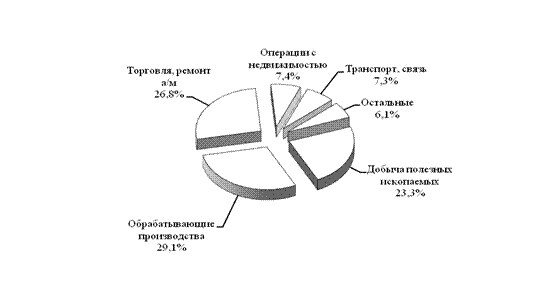 Структура иностранных инвестиций, поступивших в Россию, по видам экономической деятельности, в %