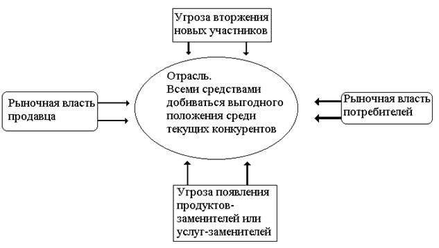 Для идентификации и анализа благоприятных возможностей и опасностей, с которыми может встретиться фирма в отрасли, используется модель Портера, включающая следующие пять сил: