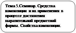 - средства композиции и закономерности их применения в процессе достижения эстетически выразительной предметной формы; свойства и качества композиции как результат применения средств композиции в работе;