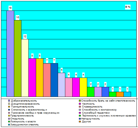Важная роль в становлении нового типа российской государственной службы, принадлежит так называемому мотивационному ресурсу государственного служащего – нравственных убеждений и принципов поведения, которые будут способствовать воспитанию и формированию этических ценностных ориентаций и высокой нравственности.