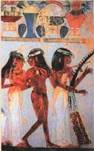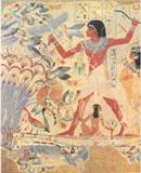 | Рельефы и росписи Среднего Царства Египта | В этот период возросла самостоятельность отдельных областей(номов) и их правителей (номархов), что привело к расцвету местных художественных школ. Вырубленные в скалах гробницы номархов, сохранившиеся около современного селения Бени Гасан, постепенно превратились в сокровищницы произведений искусства. Росписи преобладают здесь над рельефами; это объясняется тем, что для исполнения последних не годился мягкий скальный известняк. К наиболее известным произведениям этого времени относятся изображения сцен рыбной ловли и охоты в нильских зарослях (номарха Хнумхотепа, конец XX в. дон. э.). Рыбу ловят острогой, на птиц охотятся с бумерангом и сетью. Дикая кошка прячется на прогнувшемся под её тяжестью стебле цветущего папируса, нарядная стая ярких птиц укрывается в ажурной листве акации, среди них красавец удод, оранжевый, с чёрно-белыми крыльями. В изобразительном искусстве усилились тенденции к правдоподобию. В стенных росписях гробниц изображения приобрели большую композиционную свободу, появились попытки передачи объёма, обогащалась цветовая гамма. Особой поэтической свежестью и непосредственностью отличаются изображения второстепенных бытовых сцен, растений, животных (росписи гробниц в Фивах, 21 в. до н. э.). |