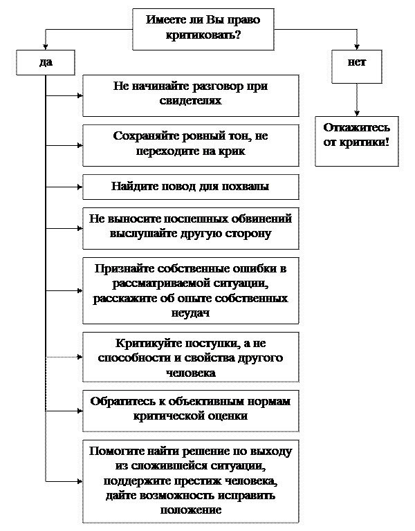 Соблюдение этических норм и правил критики вряд ли способно полностью устранить ее негативное воздействие на психическое самочувствие и настроение критикуемой стороны. Однако выполнение этих норм и правил может свести к минимуму остроту рассматриваемой проблемы, сохранить нормальные взаимоотношения между сотрудниками.