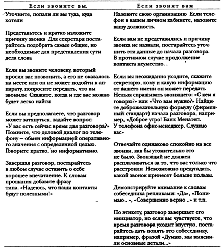 По принятому в деловом мире «телефонному этикету» каждый из говорящих должен независимо от хода и завершения разговора придерживаться определенного набораэтикетно-речевых формул общения по телефону.
