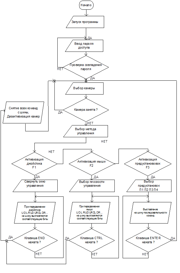 Разработка алгоритма управления поворотным устройством камеры и трансфокаторами охранного телевидения.