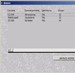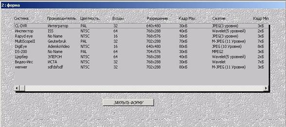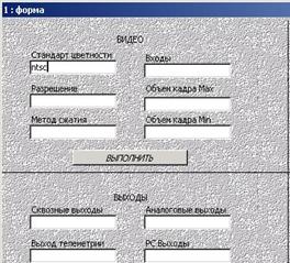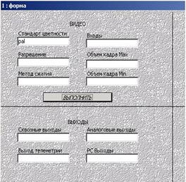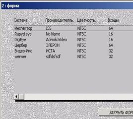 Проведем поиск записей в группе ВИДЕО по стандарту цветности (в современных системах видеонаблюдения используется два стандарта цветности видеосигнала PAL и NTSC). Если не вводить никакой информации в поле стандарт цветности и нажать кнопку выполнить будут выведены все записи базы данных «VIDEO» касающиеся группы ВИДЕО.