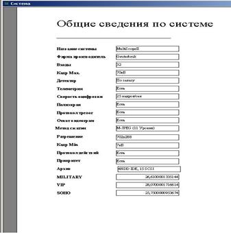В отчете приведены основные параметры системы, и оценка целесообразности использования данной системы в различных областях человеческой деятельности. Отчет можно вывести на печать.