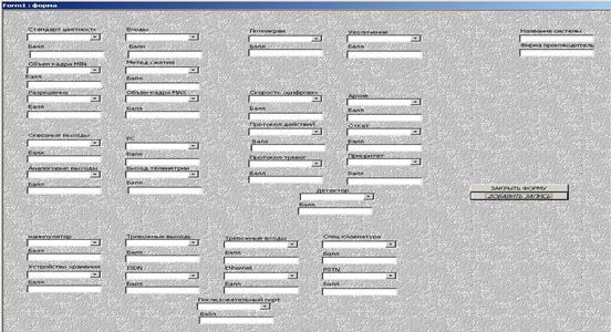 База данных «VIDEO» позволяет систематизировать имеющиеся данные по системам цифрового видеонаблюдения, автоматически оценивать систему, по баллам, проставленным к каждому параметру, с учетом поправочных весовых коэффициентов, выводить сведения по системе в общем в виде отчетов, в базе организован поиск по каждому из параметров системы, имеется возможность добавлять новые записи.