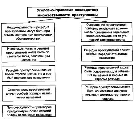 Уголовный закон рассматривает совершение лицом нескольких преступлений как обстоятельство, отражающее повышенную общественную опасность личности виновного и всего содеянного им, и предусматривает целый ряд уголовно-правовых последствий, существенно усиливающих уголовную ответственность и наказание за неоднократность, совокупность и рецидив.