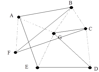 Чтоб показать вам всю сложность нахождения гамильтонова цикла рассмотрим граф из семи точек, приведенный на рисунке ниже. Если попытаться самому придумать гамильтонов цикл то на это уйдет от 30 минут до нескольких часов.