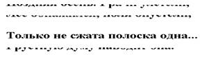 Если в этом фигурном стихе и в подобных ему произведениях функция графического образа вторична, то в авангардистских образцах визуальной поэзии - в творчестве поэтов первой половины ХХ в. В.Каменского[7], К.Моргенштерна, Э.Э.Каммингса, в немецкоязычной "конкрет-поэзии" 1950-х гг., в экспериментальном творчестве современных авангардистов В.Барского, Д.Авалиани, А.Горнона, Ры Никоновой, С.Сигея - формы графической композиции самоценны. Они уже не принадлежат исключительно литературе, а представляют новый вид творчества, в котором словесный ряд литературы равен предметному ряду изобразительного искусства. Такова, например, визуальная композиция Вилена Барского "Несжатая полоса", фрагмент которой приведен ниже. Известное стихотворение Некрасова подвергнуто графической коррекции: поэт-авангардист (с художественным образованием) имитирует брак при типографском наборе текста и тем самым меняет семантику произведения, ведь единственной "несжатой полоской" в тексте Барского оказывается стих с популярной цитатой:
