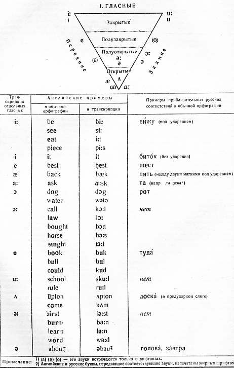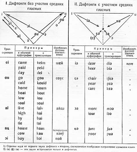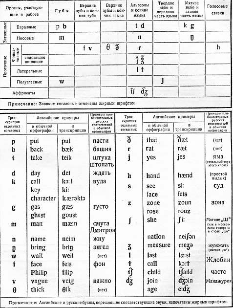 Если мы возьмем за единицу сравнения так наз. стандартное произношение А. Яз. в Англии, колониях и САСШ, не учитывая особенностей современных диалектов и наречий САСШ, то мы можем отметить: 1. почти полное отсутствие «мягких», т. е. палатализованных согласных, 2. отсутствие приглушения, за редкими исключениями, конечных согласных; так напр. head произносится с конечным d, а не t, как звучало бы это сочетание звуков в русском яз., 3. ассимиляция и диссимиляция в А. Яз. значительно реже осуществляется, чем в русском, 4. ударение в слове, так же как и в русском яз., экспираторное, но в отличие от русского не переходит с одного слога на другой, а прикреплено к определенному слогу. Различие артикуляционной базы (см.) и целого ряда фонетических навыков затрудняет усвоение звуковой формы английского языка