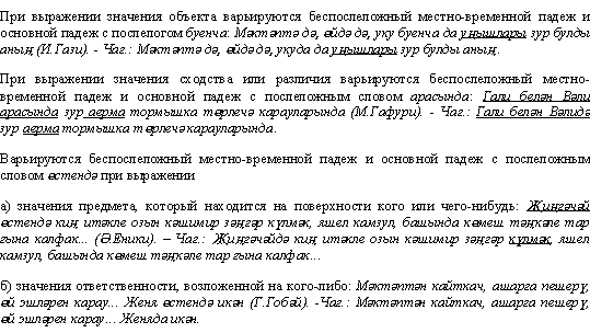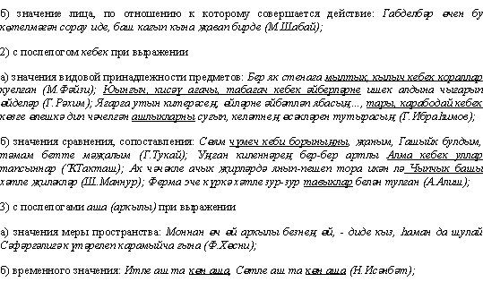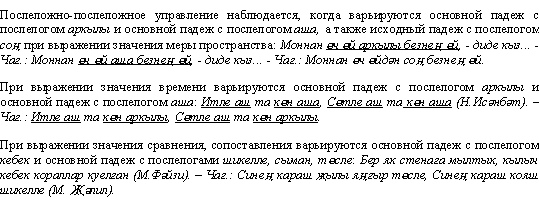 Как уже отметилось, в татарском языке могут быть и случаи управления основным падежом, но выступающим в значении косвенных падежей. Но при послеложном управлении основным падежом нельзя подразумевать какой-либо другой косвенный падеж, так что выделяем случаи исключения из этого правила.