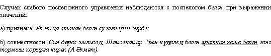 Сильное послеложное именное управление наблюдается тогда, когда связь между именами осуществляется при помощи падежных аффиксов и послелогов, где нет глагольного участия. Сильное послеложное управление наблюдается