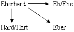 Особенность деривации в системе английских личных имен состоит в том, что аффиксация выступает как своеобразная вторичная деривация по отношению к сокращению и без него, как правило, не используется. Таким образом, картину образования английских дериватов можно представить в следующем виде: от полных или исходных имен, например, DANIEL и THEODORE, образуются сначала сокращенные имена DAN и TED, а от них образуются гипокористические имена DANNY, TEDDY. Можно поэтому сокращенные имена называть первичными дериватами, а гипокористические имена — вторичными дериватами полных имен [Кубрякова Е.С., 1974].