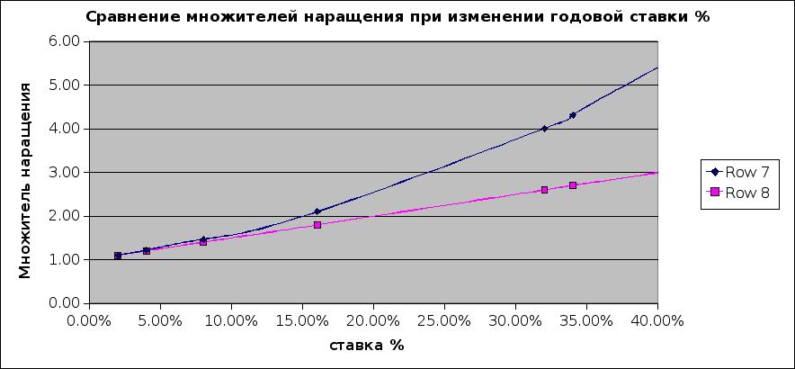 | Множитель наращения для сложных % | 1.10 | 1.22 | 1.47 | 2.10 | 4.01 | 4.32 | 5.61 | |