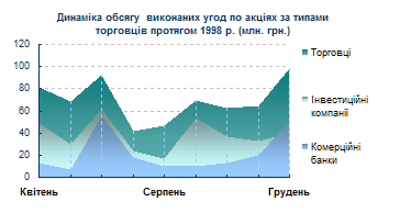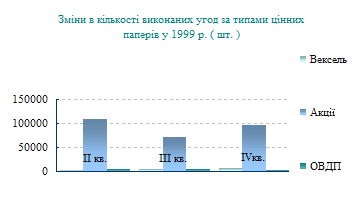 На розвинутих фондових ринках біржова торгівля облігаціями, як правило, невелика по обсязі. Сучасні біржі виконують для облігацій головним чином представничі функції: норми, встановлені державою для інвестиційних операцій інституціональних інвесторів, забороняють багатьом із них одержувати облігації, що не котируються на якийсь із фондових бірж. Оскільки зараз важко знайти емітенту, що не розраховує на покупку його облігацій інституціональними інвесторами, зовсім не дивовижно, що абсолютна більшість емітентів справно йде на біржу з проханням прийняти облігації до котирування[5] . І усе ж угоди з облігаціями відбуваються головним чином у позабіржовому обороті. Головна причина полягає в тому, що динаміка ринкових цін облігацій більш передбачена, менш схильна сильним і раптовим коливанням, чим у випадку акцій. Обсяг емісій акцій та облігацій у 1999р. відображено у додатку № 2.