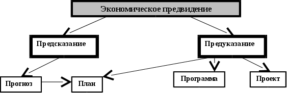 Экономическое прогнозирование имеет больше общего с природой плана, чем с прогнозом вообще. Экономический прогноз не просто интерпретирует закономерности и внешние условия развития, а используется для поиска нужных решений. Он может рассматриваться как начальная стадия планирования, определяющая выбор путей достижение целей этого плана.