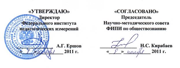 элементов содержания и требований к уровню подготовки выпускников общеобразовательных учреждений для проведения в 2012 году единого государственного экзамена по ОБЩЕСТВОЗНАНИЮ