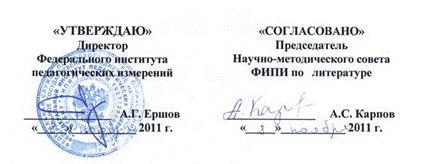 Демонстрационный вариант контрольных измерительных материалов для проведения в 2012 году единого государственного экзамена по ЛИТЕРАТУРЕ