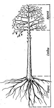 Взрослое дерево имеет ствол, крону и корни (рисунок 1.1)