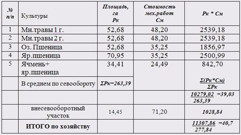Таблица 33 - Стоимость выполнения механизированных работ (по данным технологических карт), руб. на 1 га (I вариант)