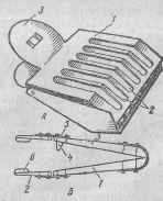 Приспособление для ловли маток ПЛМ-177 (см. рис. выше), Предназначено оно для отлавливания маток в семьях. Обеспечивает быстрый отлов матки и пересадку ее в пересылочную клетку, Сострит из корпуса с пружиной /, отверстий для свободного выхода пчел 2, попавших в него при отлове матки, и двух лапок 3. Габаритные размеры, мм: длина 70, ширина 45, высота 20. Масса 0,02 кг.