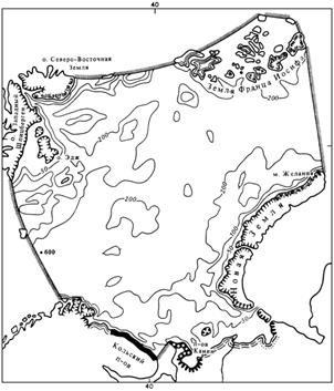 Дно Баренцева моря - сложнорасчлененная подводная равнина с волнистой поверхностью, несколько покатой к западу и северо-востоку. Наиболее глубокие районы, в том числе и максимальная глубина моря, находятся в его западной части. Для рельефа дна моря в целом характерно чередование крупных структурных элементов - подводных возвышенностей и желобов - пересекающих его в разных направлениях, а также существование многочисленных мелких (3-5 м) неровностей на глубинах менее 200 м и террасовидных уступов на склонах. Таким образом, это море отличается весьма неравномерным распределением глубин. При его средней глубине 186 м разность глубин в открытой части достигает 400 м. Пересеченный рельеф дна существенно сказывается на гидрологических условиях моря. Н.Н. Зубов справедливо считал Баренцево море классическим примером влияния рельефа дна да гидрологические процессы, протекающие в море.