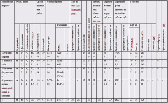 Таким образом, на основе плановой технологии производства зерна овса были получены следующие данные: