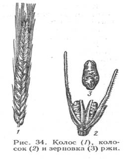 Рожь (SecalecerealeZ.) дает всходы фиолетовой или буро-коричневой окраски. Корень мочковатый, уходящий в глубь почвы до 2 м.