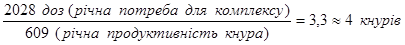 Одержана величина є вихідною для визначеня кількості нормальних опоросів. Згідно з проектним завданням, багатоплідність технологічних ♀ дорівнює 9 голів на опорос, тому протягом року буде одержано: