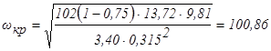Определив основные параметры молотильного барабана, необходимо найти критическую угловую скорость: