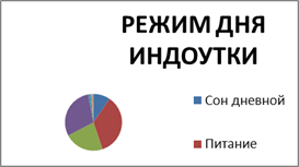 Наблюдения проводились в течение всего светлого времени суток, начиная с 6 часов утра (время когда индоутки просыпались) и заканчивая в 20 часов вечера, (время когда начинало темнеть и птица ложилась спать).В общей сложности период наблюдений составил 40 дней. Данная методика показалась нам наиболее рациональной и удобной.
