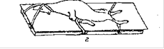 Для фиксации собак и кошек на операционном столе в спинном положении к предплечьям привязывают мягкие веревки или лучше тесьмы. Укладывают животное и пропускают тесьму от одной грудной конечности между столом и спиной собаки и затем поверх предплечья другой конечности к отверстиям или крючкам стола, где и закрепляют. Так же поступают с тесьмой от другой конечности. Тазовые конечности вытягивают и привязывают к крючкам или ножкам стола. Челюсти собаки связывают тесьмой, а концы ее привязывают к столу.