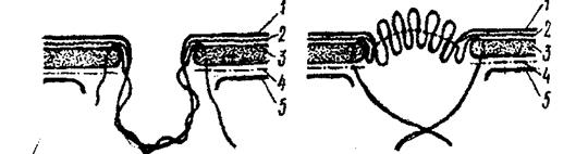 Оперативное лечение вправимой пупочной грыжи 3-й способ Оливкоеа: 1 - брюшина; 2 - поперечная фасция; 3 - мышечно-апоневротический слой; 4 - желтая брюшная фасция: 5 - кожа