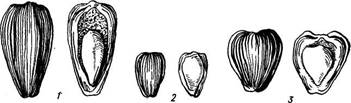 Рис. 2 - Семянки подсолнечника: 1 - грызового; 2 - масличного; 3 - межеумка