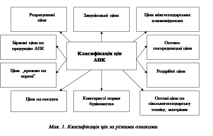 Тому з урахуванням особливостей діяльності підприємств сільського господарства ціни класифікують за різними ознаками (мал. 1):