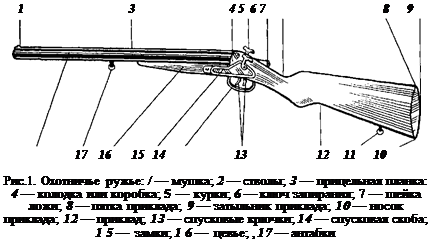 Охотники-практики, признавая преимущества полуавтомата и входящих в моду помповых ружей в условиях некоторых охот, остаются верны классической двустволке с горизонтальным расположением стволов (рис. 1) за ее надежность и универсальность на любой охоте. Полуавтоматы, магазинки и помповые ружья они заводят в качестве дополнения к верной двустволке. А многие предпочитают иметь лишь одно ружье, справедливо полагая, что из одного привычного оружия результаты стрельбы бывают всегда выше. "Калибр дробового ружья характеризует диаметр его стволов. В массовых выпусках изготавливаются ружья 32, 28, 24, 20, 16 и 12-го калибров, реже встречаются 14, 10 и 8-й калибры. Нумерация калибра соответствует следующему диаметру канала ствола: