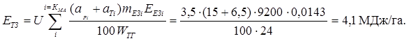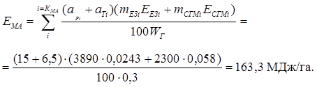 | ЕВТМ | — | повна енергоємність ВТМ, необхідних для виробництва ПР на площі 1 га, МДж/га; |