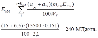 | ЕПМА | — | повна енергоємність палива для МА, що витрачається при виробництві ПР на площі 1 га, МДж/га дорівнює — |