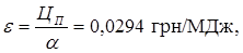 Визначимо коефіцієнт переведення енергетичної оцінки до грошової: