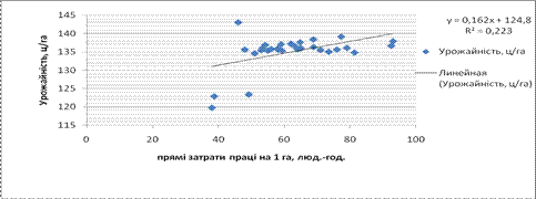 2. Прямі затрати праці на 1 га (люд.-год.) = прямі затрати праці (люд.-год.) / посівна площа (га)